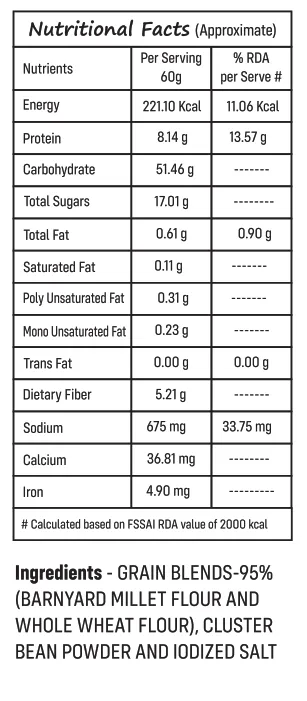 Barnyard Millet Vermicelli (Sevai) is a gluten-free, fiber-rich, and protein-packed alternative to regular vermicelli, made from barnyard millet flour. It is perfect for a healthy breakfast, snacks, or light meals, offering a wholesome balance of taste and nutrition.