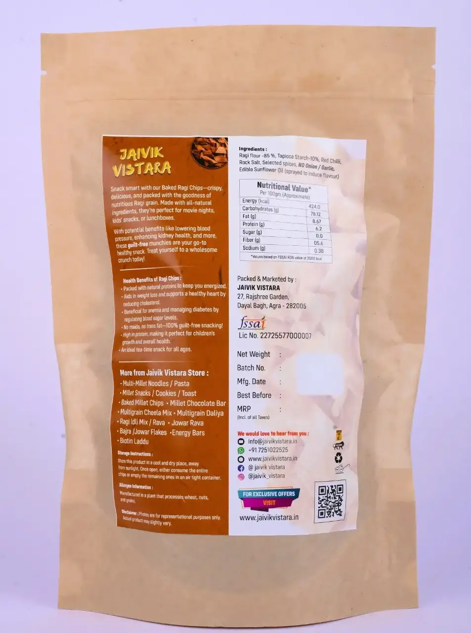 Snack smart with our Baked Ragi Chips—crispy, delicious, and packed with the goodness of nutritious ragi grain. Made with all-natural ingredients, they’re perfect for movie nights, kids’ snacks, or lunchboxes.