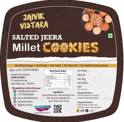 Salt Jeera Cookies made with Foxtail Millet and Whole Wheat Flour are a savory, crispy, and healthy snack—perfect for those who prefer something less sweet but still nutritious. These cookies are high in fiber, rich in minerals, and have a unique spicy twist from black pepper.